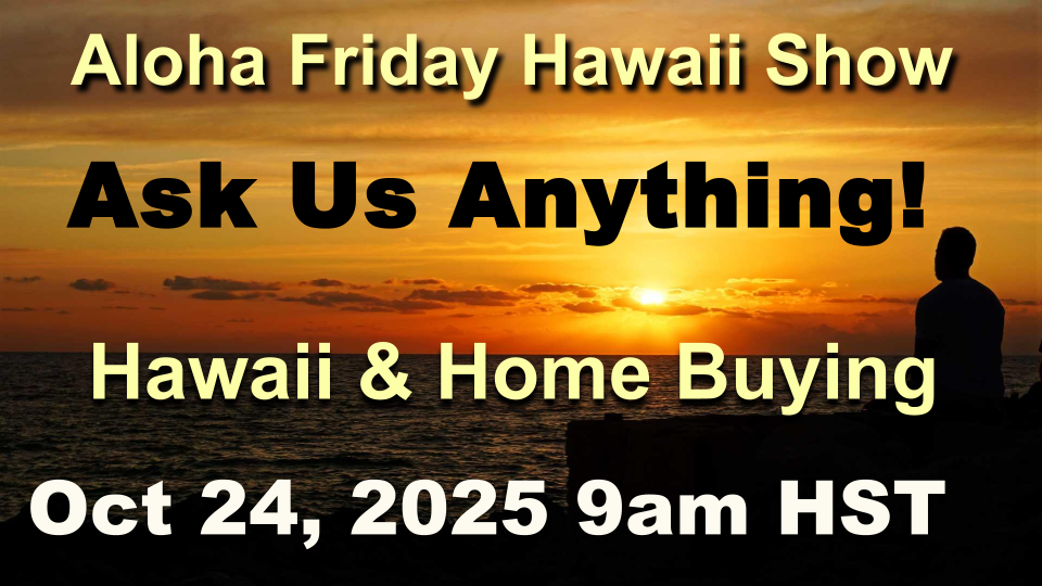 Get your questions in and join us LIVE this Friday, October 24 at 9am Hawaii time: The Aloha Friday Hawaii Real Estate Show
