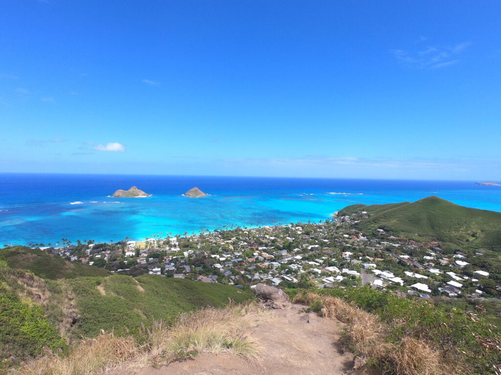 Lanikai Beach and “The Mokes” (islands) make for some of the most picturesque photos of Hawaii. The Lanikai Pillbox Hike gives you a commanding view of the whole area and is not to be missed. It’s a very short hike though there are a few steep climbs but the reward is a view like this one. Tough to beat! For now, put it on your desktop and enjoy!