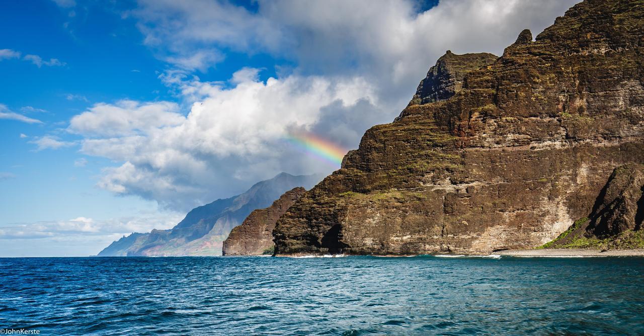 Double the beauty on Kauai! Look at that vibrant rainbow over the dramatic Napali Coast. Pure island paradise captured in one shot.
