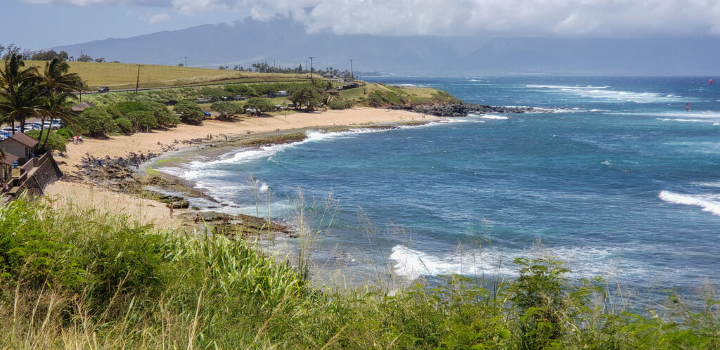 I really enjoy the diversity of this shot – you’ve got a grassy foreground, wind, waves, coconut trees, rocky, sandy shorelines, all with a mountain backdrop. You can almost feel the wind at your back.